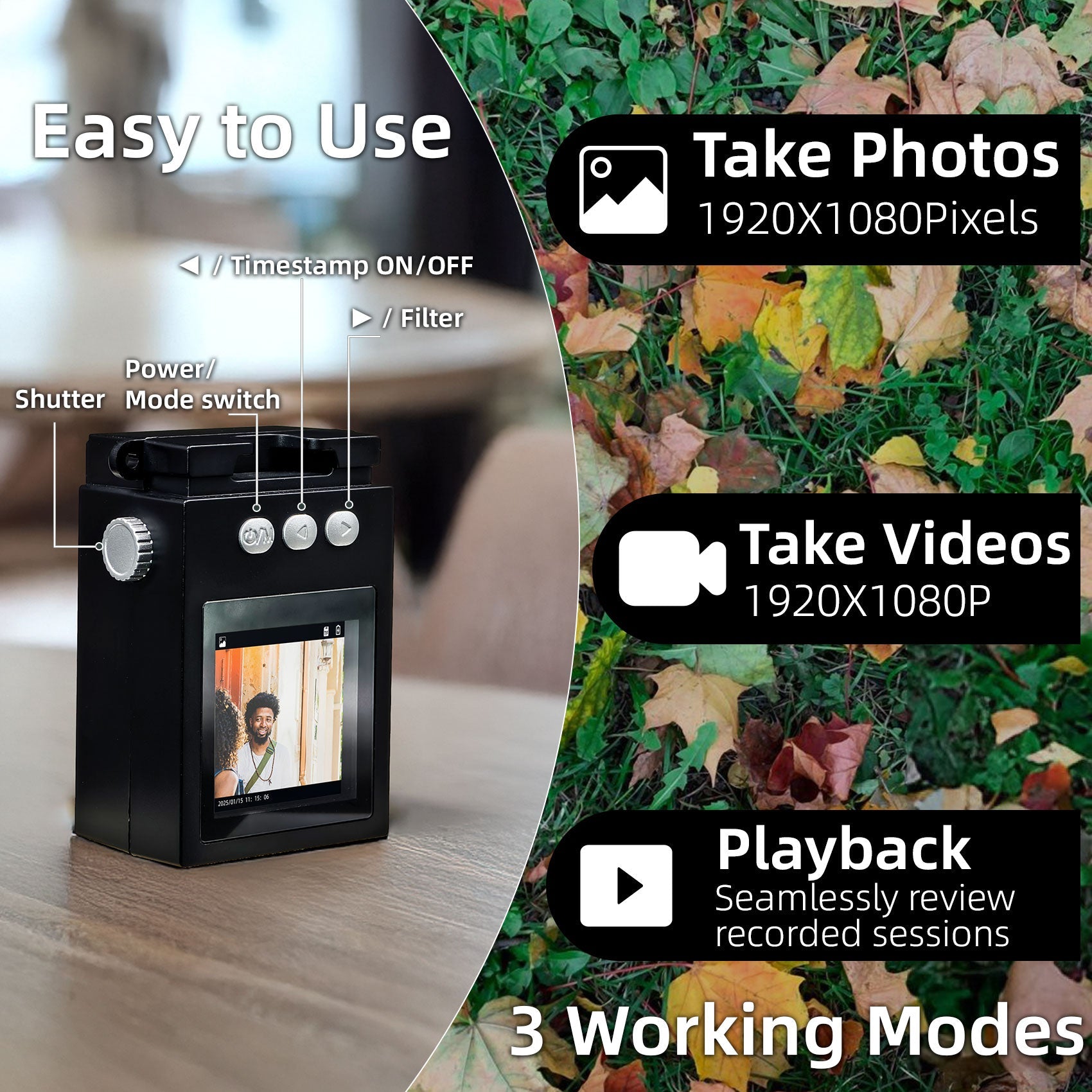 Capture timeless moments with this Mini Retro Digital Camera. Featuring a vintage design, wide-angle lens, and nostalgic photo filters, it creates authentic old-school photos and videos. Comes with a 32GB memory card included for ample storage. Perfect for vintage lovers and creative photography enthusiasts seeking charm and portability in one compact device.