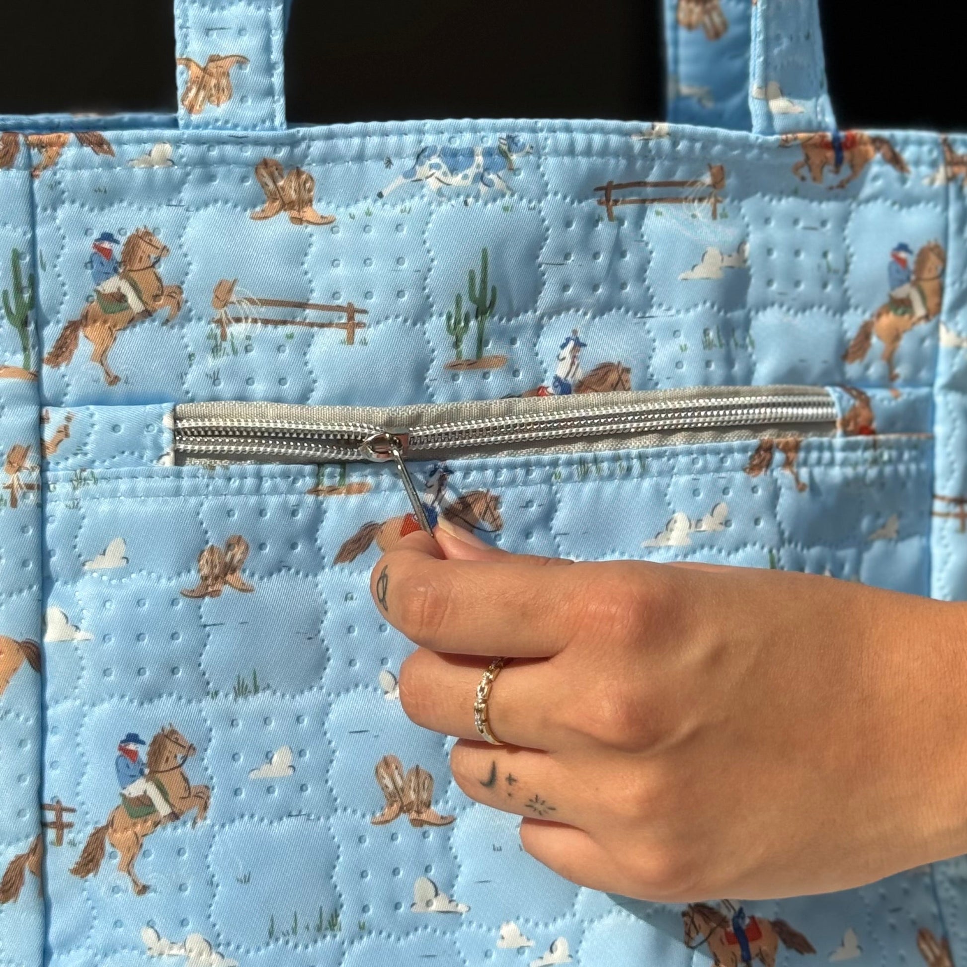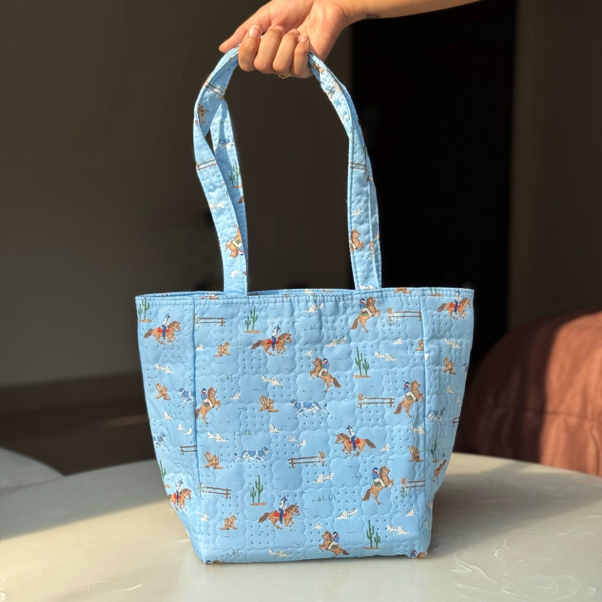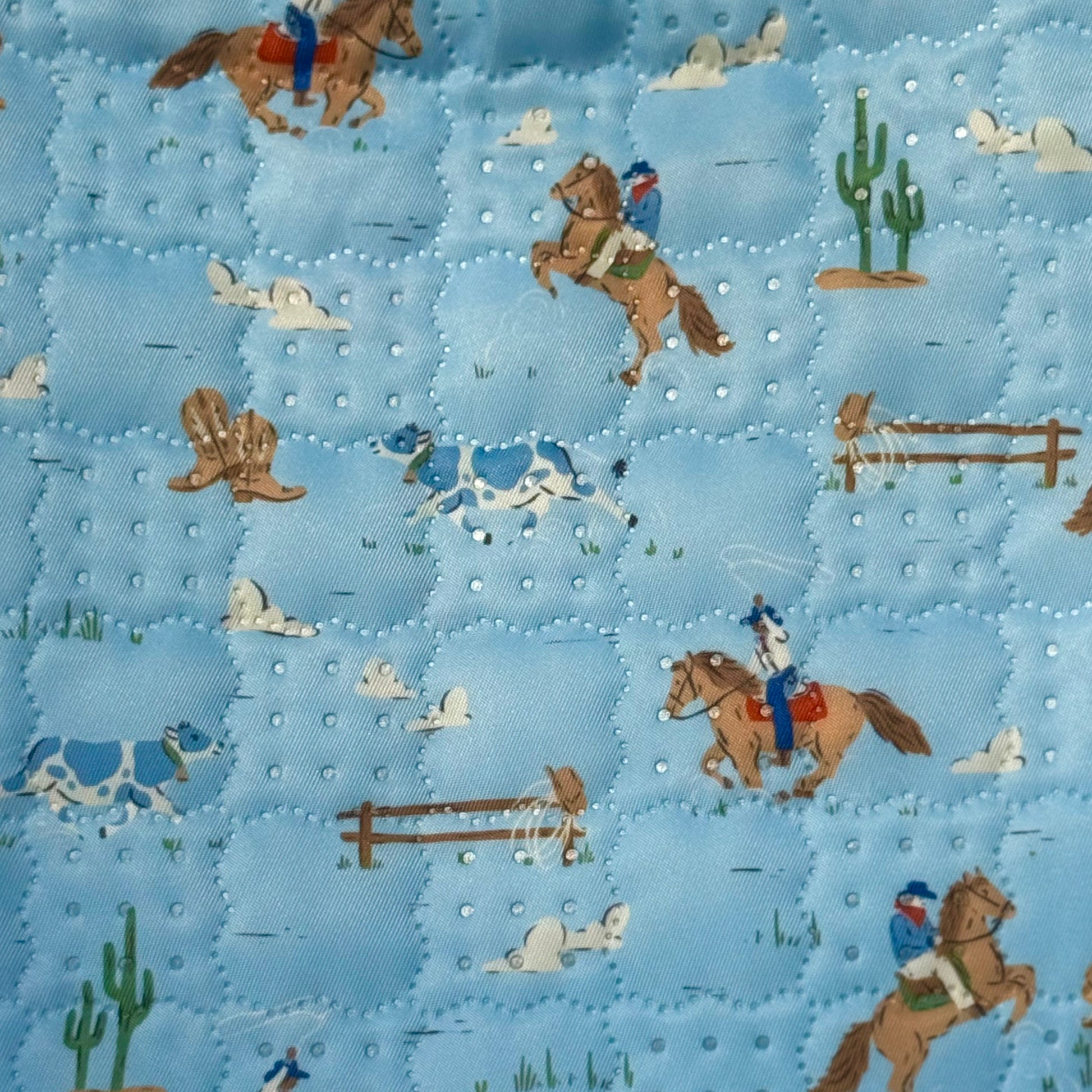Meet your new favorite grab-and-go companion, the Cowboy Mini Tote. Designed for those who love to stay stylish on the move, this bag blends playful charm with everyday practicality. With its adorable cowboy-themed print, quilted cushion texture, and thoughtful detailing, itβs a must-have for your daily adventures.