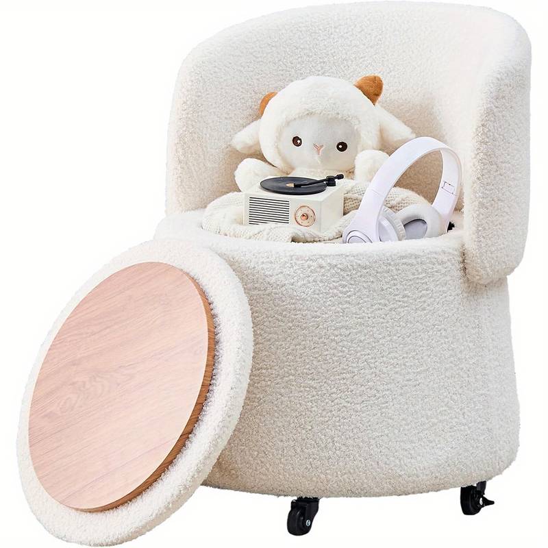 This modern black teddy velvet ottoman combines style and function with a cozy backrest, hidden 3.2 cu ft storage, and no assembly required. Perfect as a vanity stool, footrest, or side table, it features sturdy hardwood construction and plush upholstery. A compact, space-saving solution for bedrooms, living rooms, or bathrooms with contemporary flair.