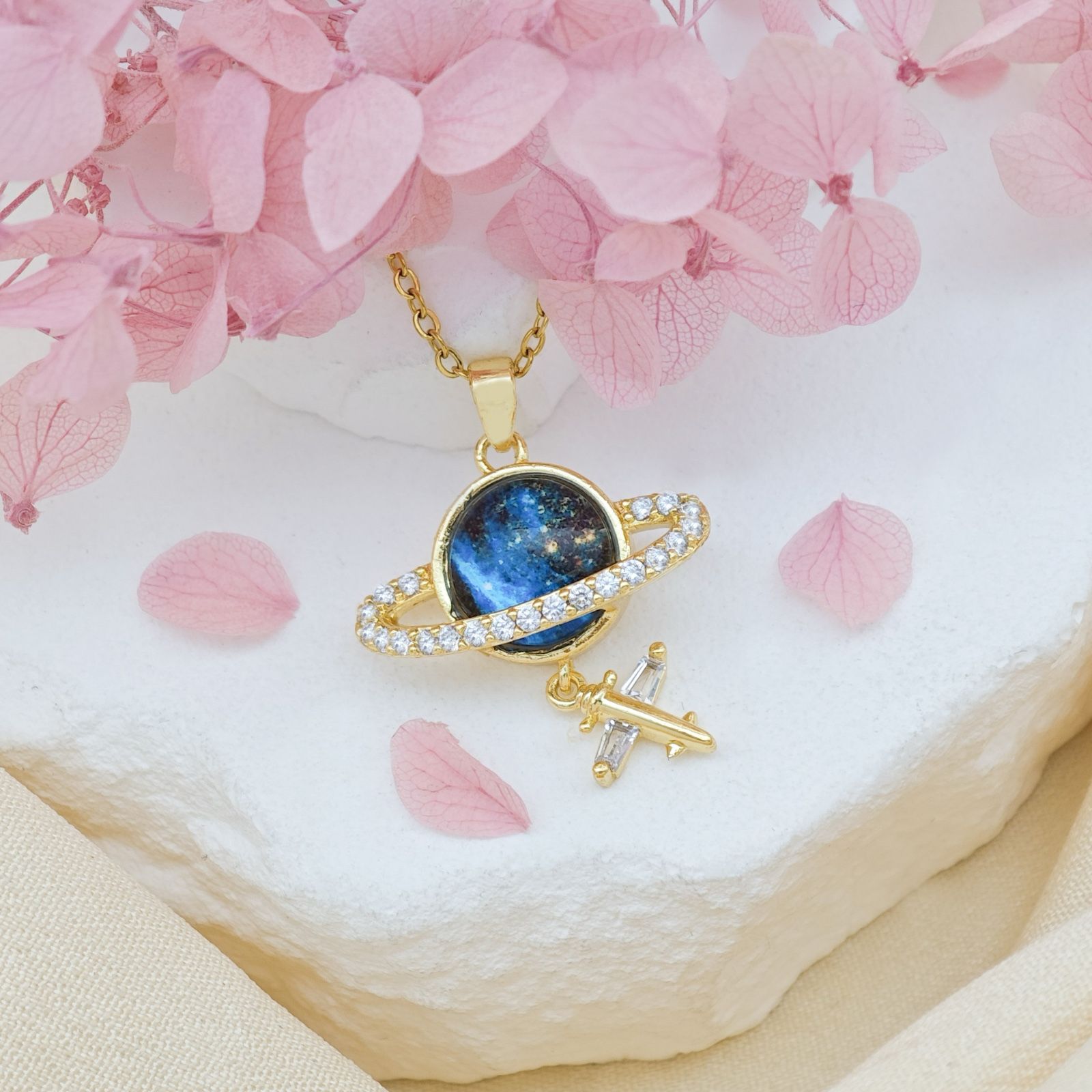Galaxy necklace, blue necklace, gold necklace, Pinterest inspired accessories, Pinteresty jewellery, Anti tarnish necklace, gold jewellery, stainless steel necklace, gold plated necklace
