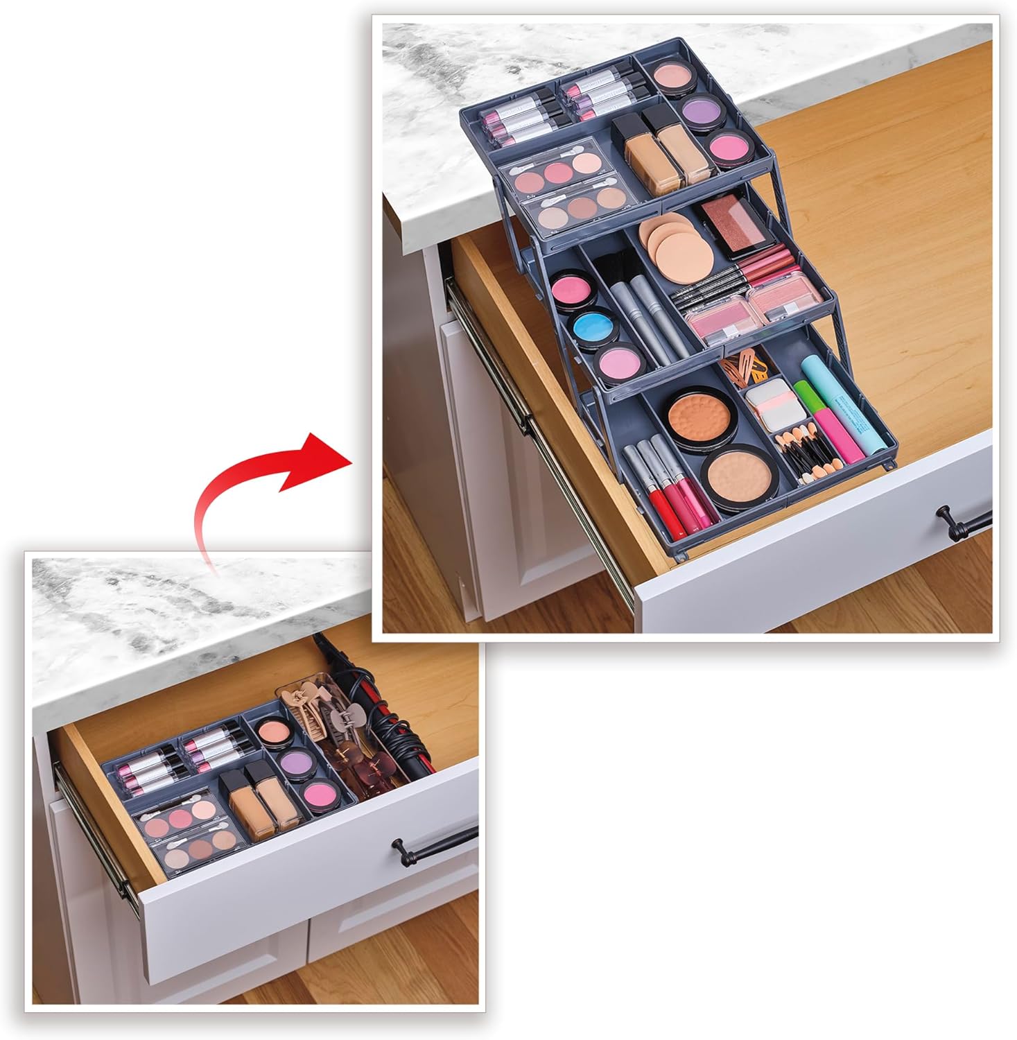 Say goodbye to clutter and hello to triple the drawer space—perfect for kitchen, vanity, office, or craft storage.