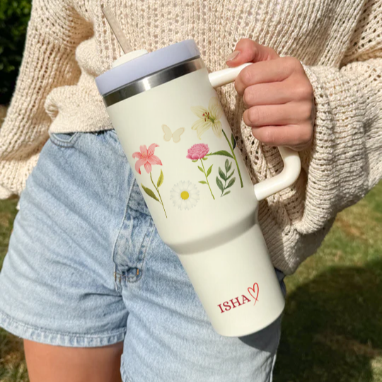 Personalized FloraCup™ Tumbler with Straw & Lid