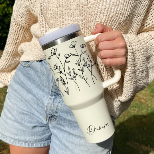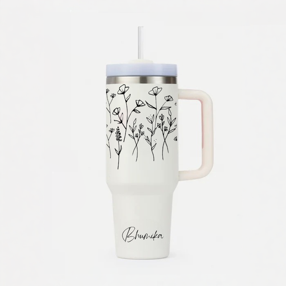 Personalized FleurFlow™ Tumbler with Straw & Lid
