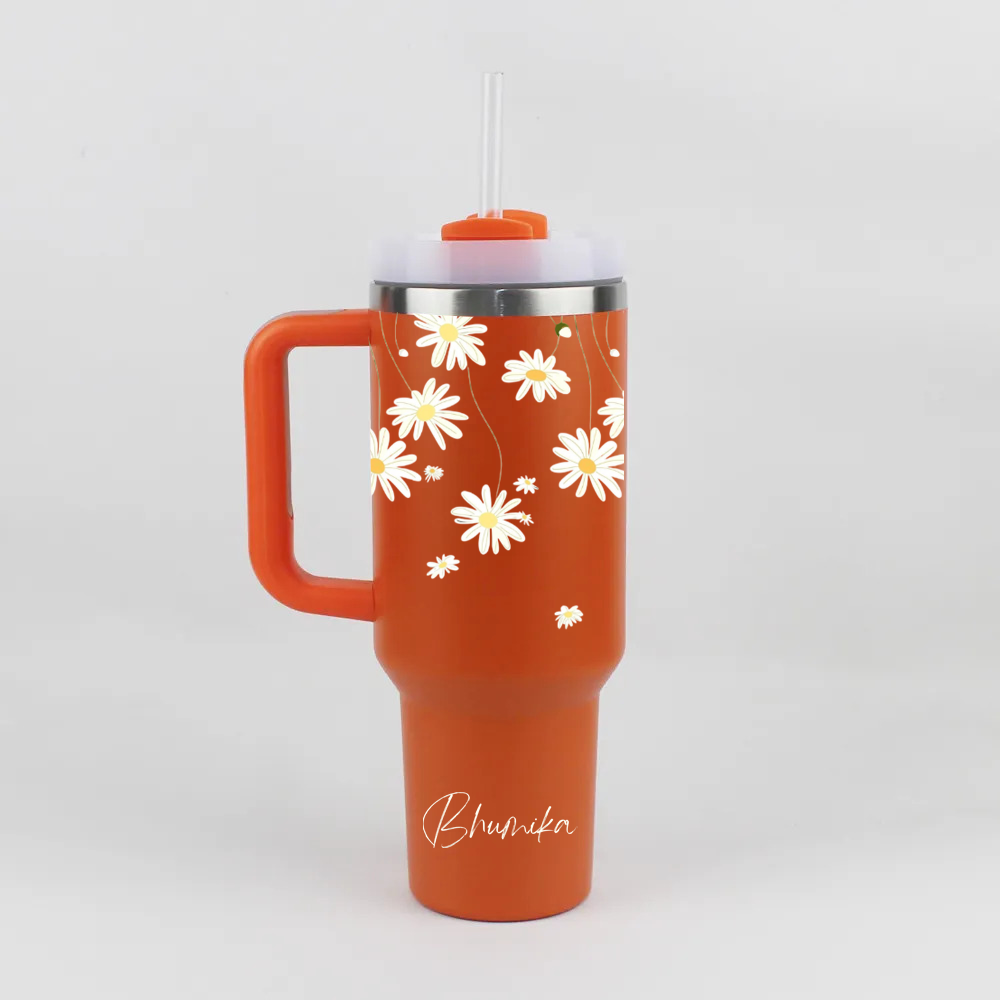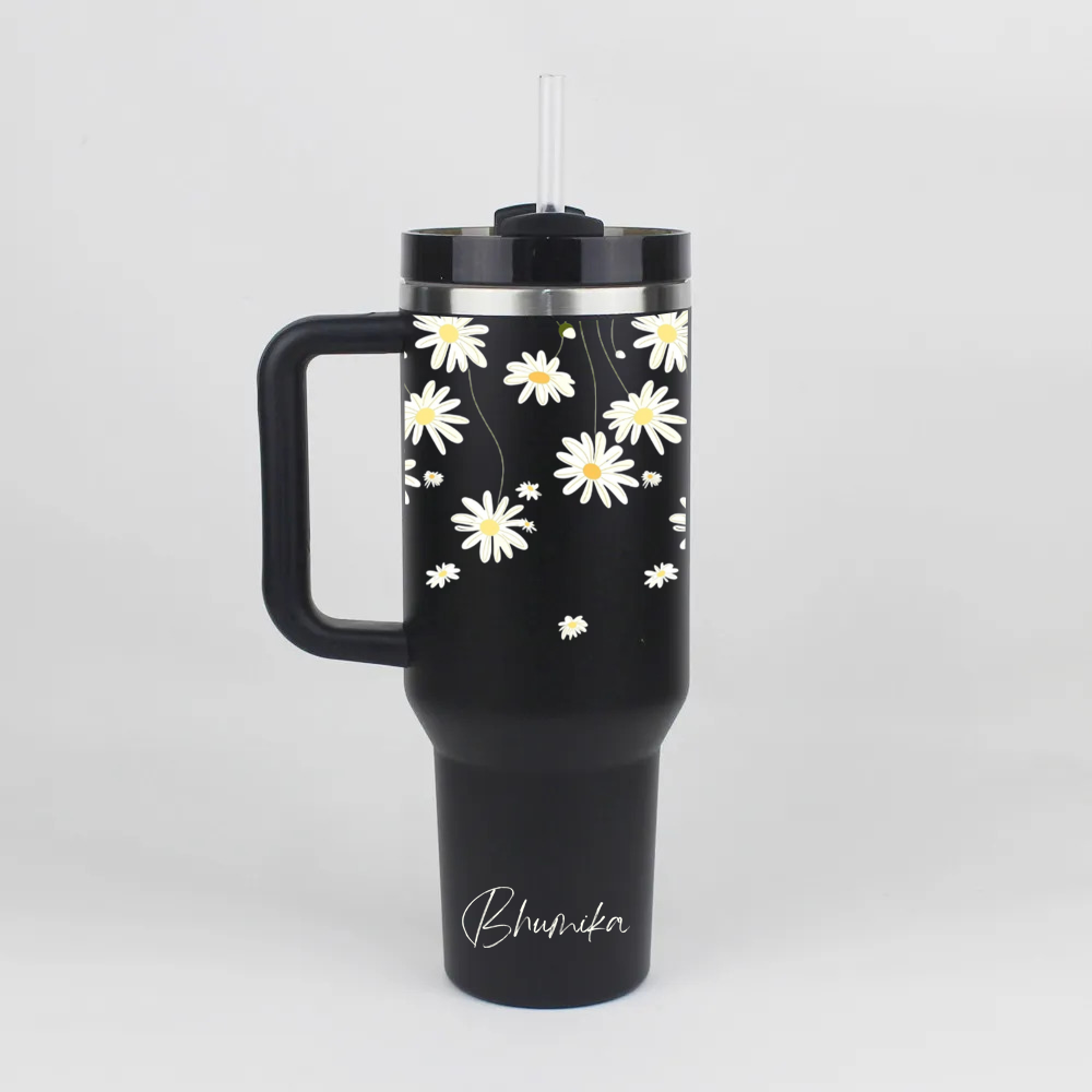 Upgrade your drinkware collection with our White Flowers Printed Tumbler. 🌟