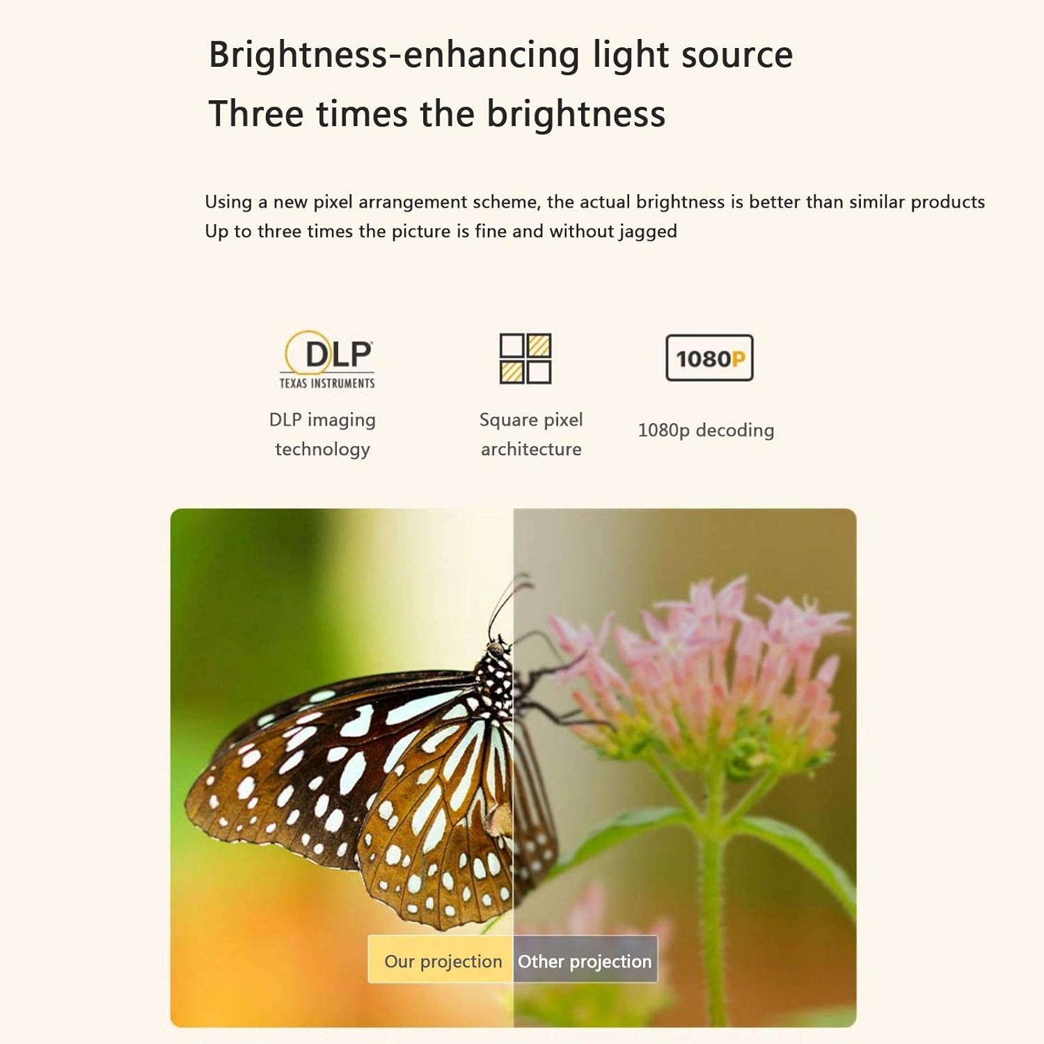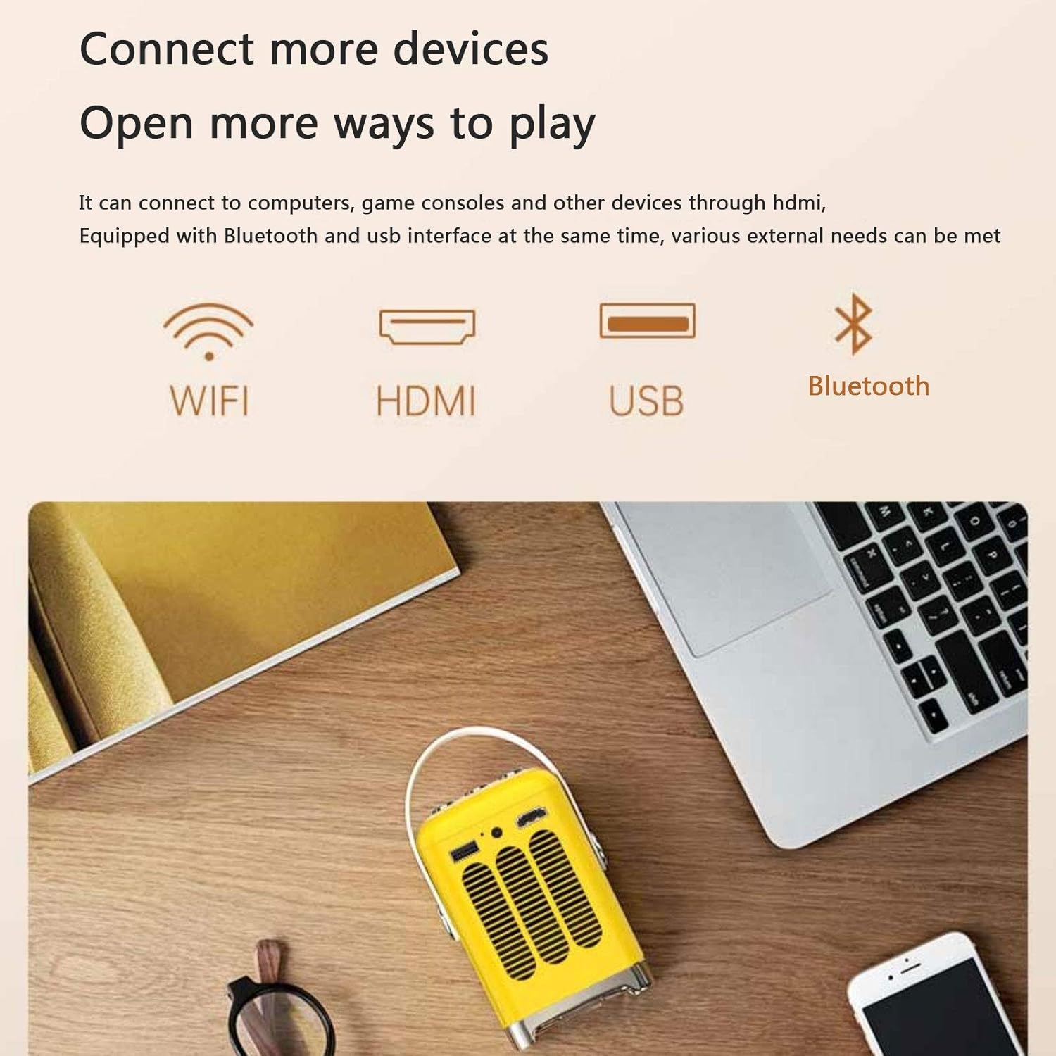Elevate your viewing experience with this sleek yellow portable projector supporting 1080p Full HD and projecting up to 300". It features 360° stereo sound, integrated Bluetooth, and a compact design built for convenience. Wide compatibility ensures seamless connections to phones, laptops, consoles, and TV sticks—perfect for home theaters on the go.