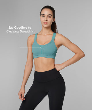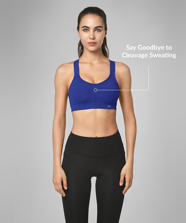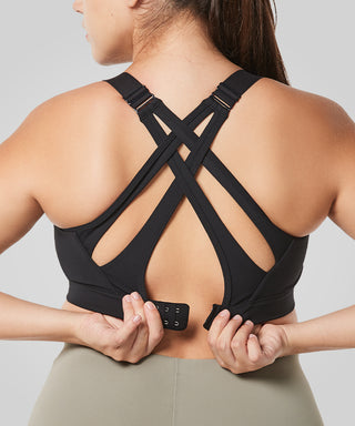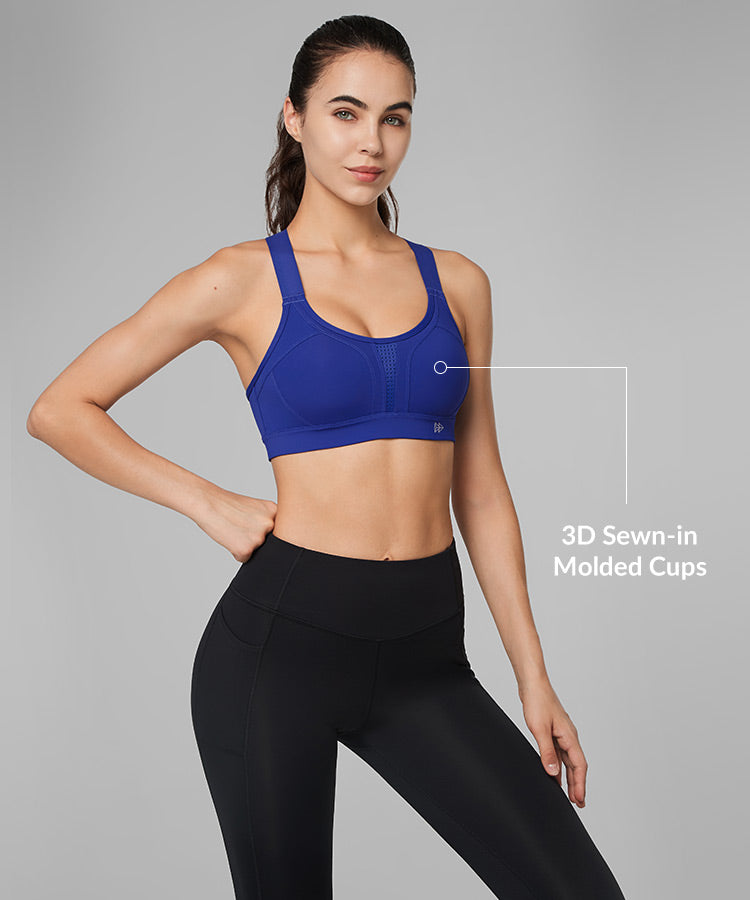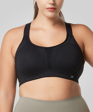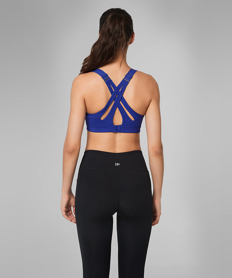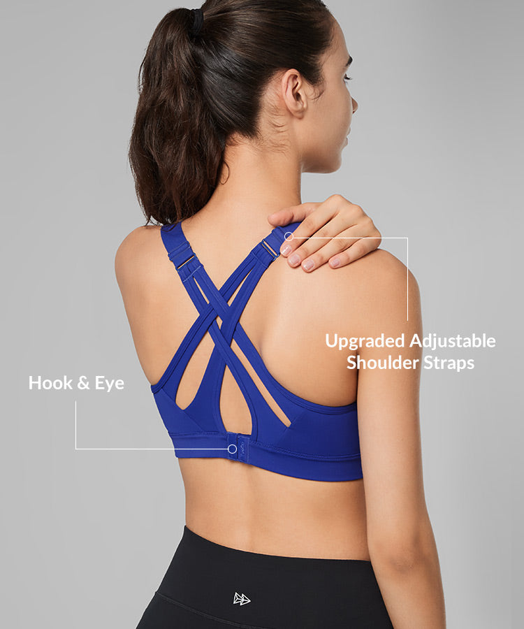 - High-impact sports bra with adjustable crisscross straps