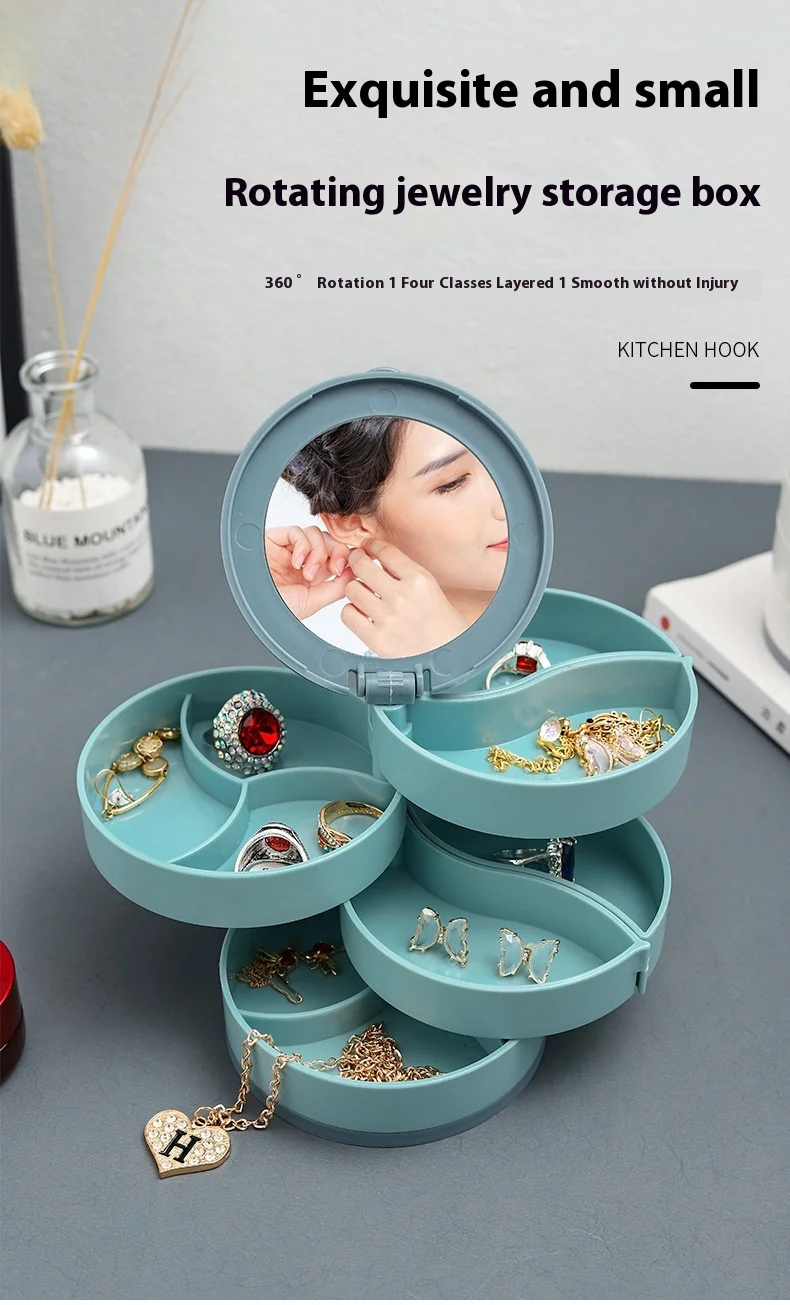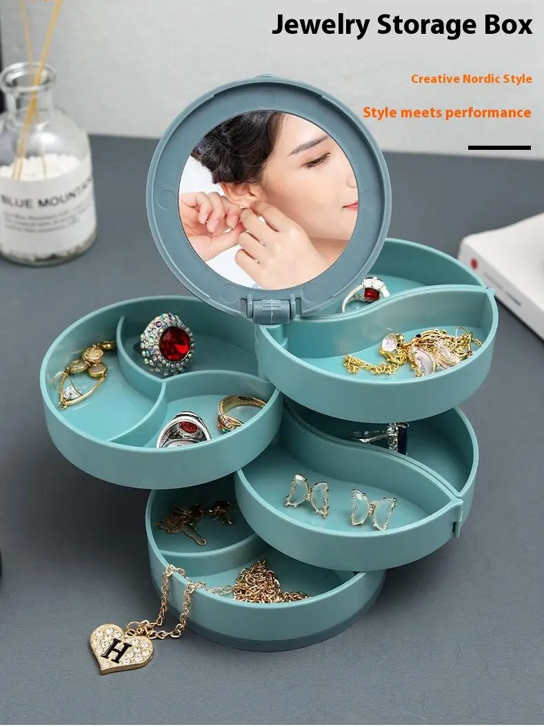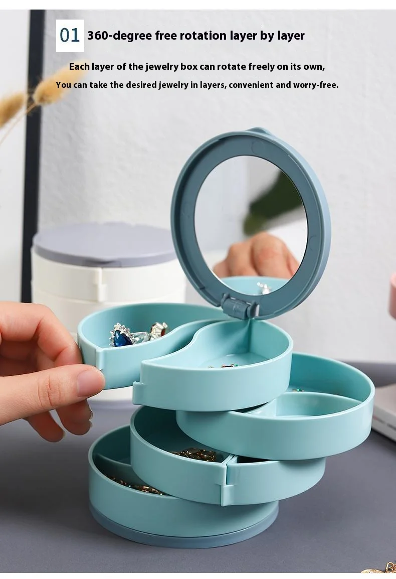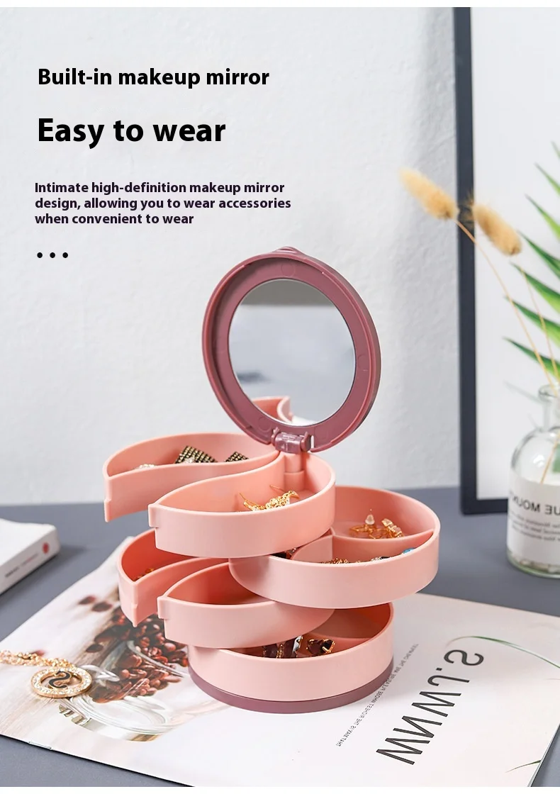 Rotating Jewelry Storage Box - With Makeup Mirror™️