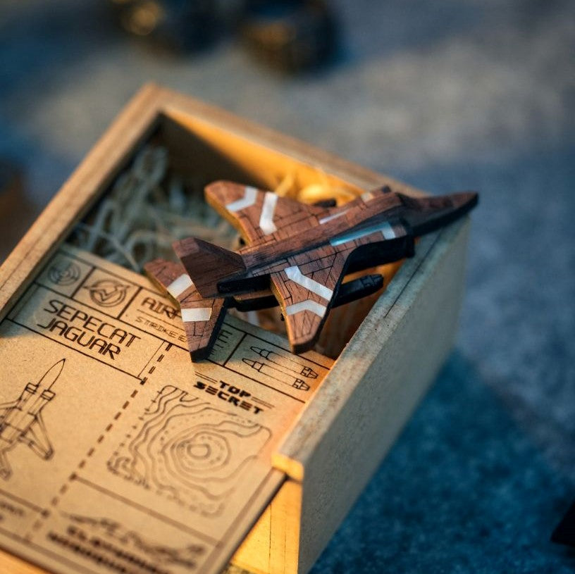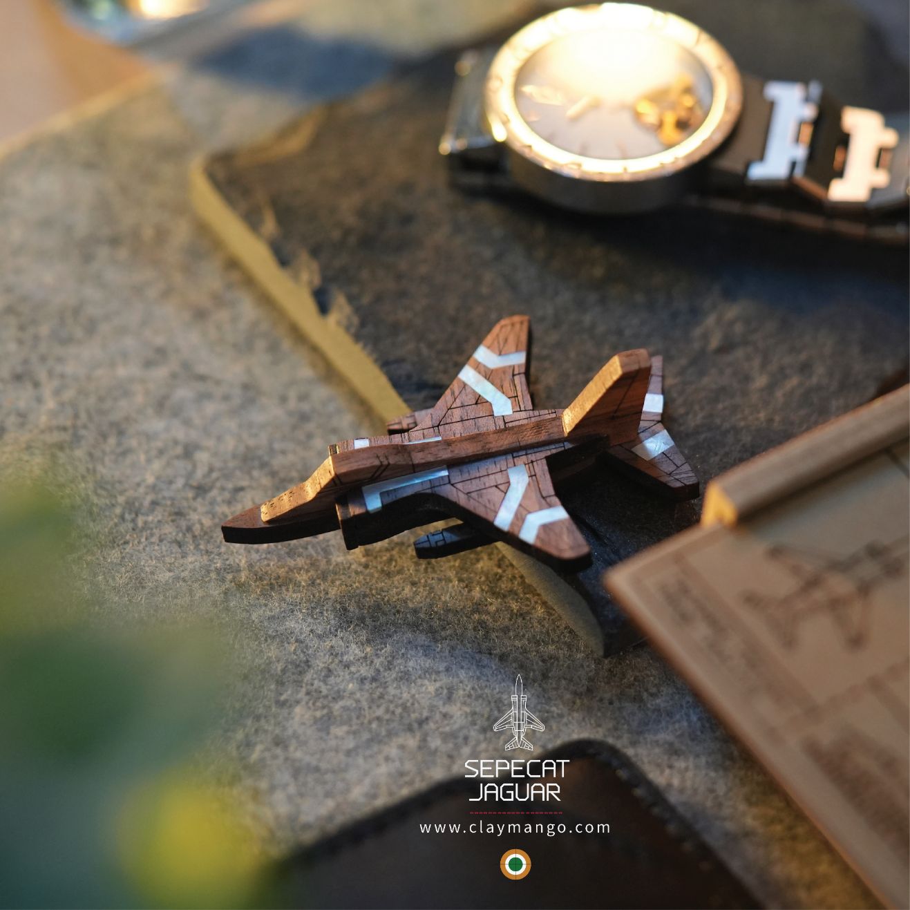 The SEPECAT Jaguar "The Striker" Wooden Brooch is a meticulously crafted accessory from the Fighter Jet Collectible Series, available at Claymango.com. Designed for aviation enthusiasts and collectors, this brooch pays homage to the SEPECAT Jaguar, a supersonic jet trainer and light ground-attack aircraft developed through a joint venture between the UK and France.