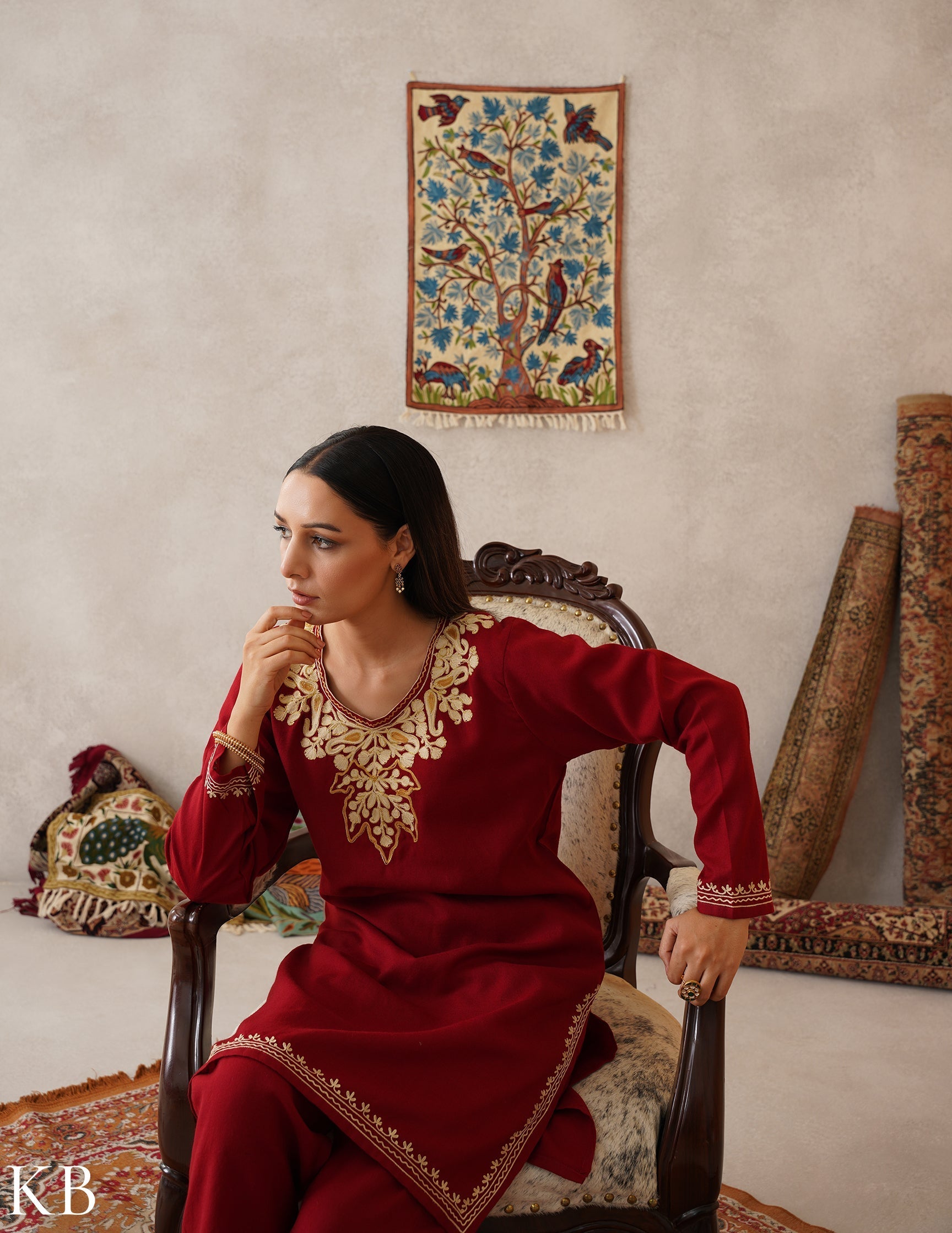 OCCASION - Crafted for the modern woman, this co-ord set is perfect for any casual occasion. Ideal for family gatherings, college, outings with friends, or relaxing at home, our Kashmiri embroidered co-ord sets offer warm, trendy looks daily.