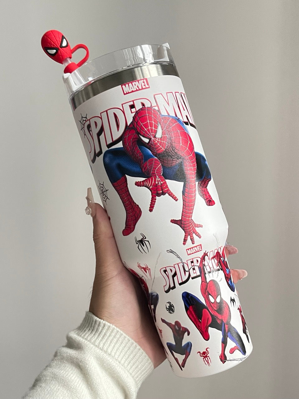 Spiderman Design: This tumbler features a vibrant and iconic Spiderman theme, making it perfect for fans of the superhero. The eye-catching design adds a fun, personalized touch to your drinkware collection, especially for kids or anyone who loves Marvel.