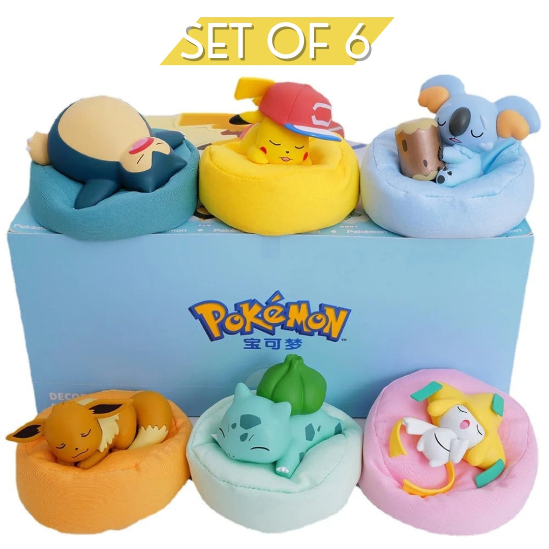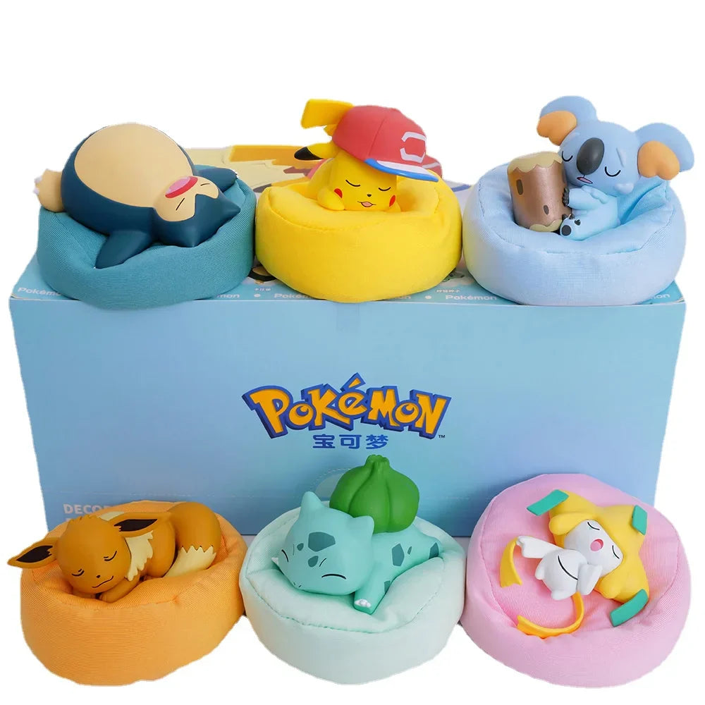 Transform your living space with the cozy charm of Sleeping Pokémon figurines. Featuring beloved characters like Bulbasaur, Pikachu, Eevee, Snorlax, and more, these intricately designed pieces capture your favorite Pokémon peacefully resting on soft pillows.