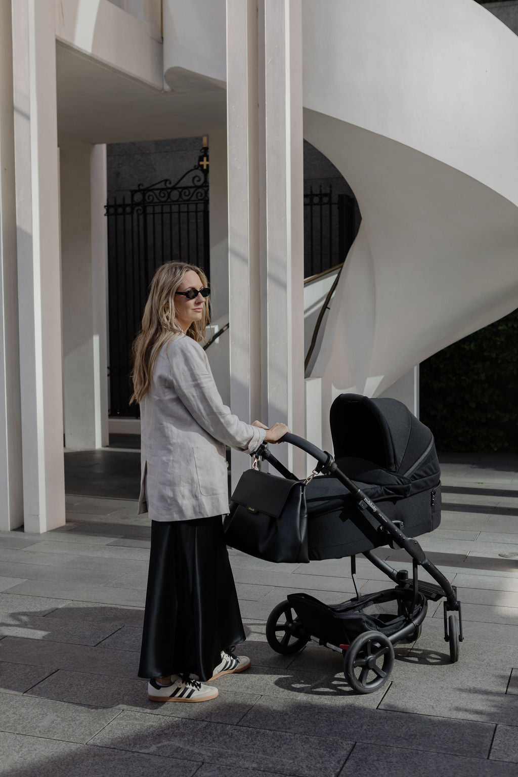 Offers a 21-liter capacity with ample compartments, including a section for a 13" laptop, making it ideal for both parents and professionals.
