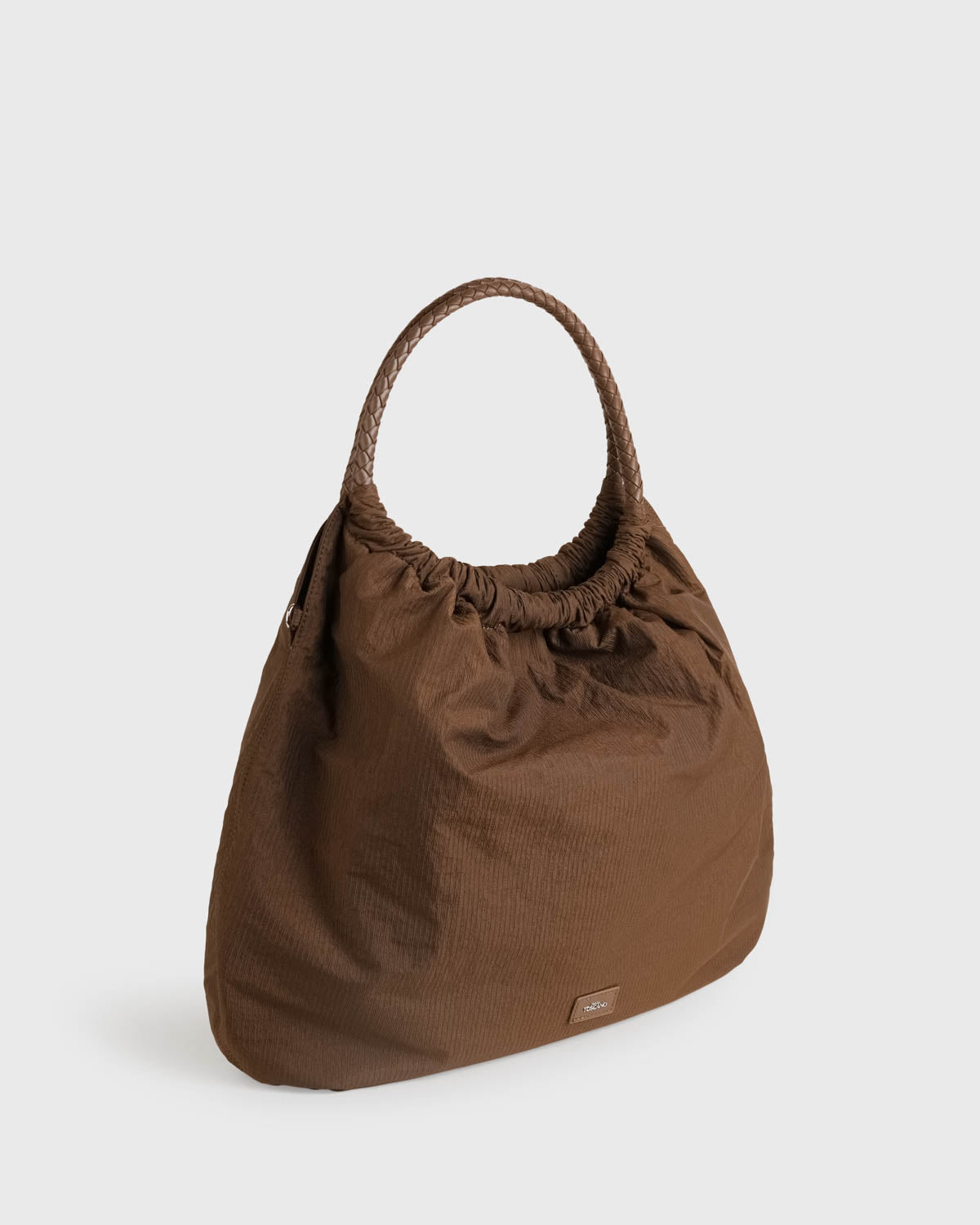 Relaxed yet refined enough for work—the bag that hits all the right notes. Made from recycled nylon, this cool and slouchy design has a capacious interior with smart pockets, and stylish plaited handles for a touch of elegance. Pack it flat when not in use to save space in your wardrobe.