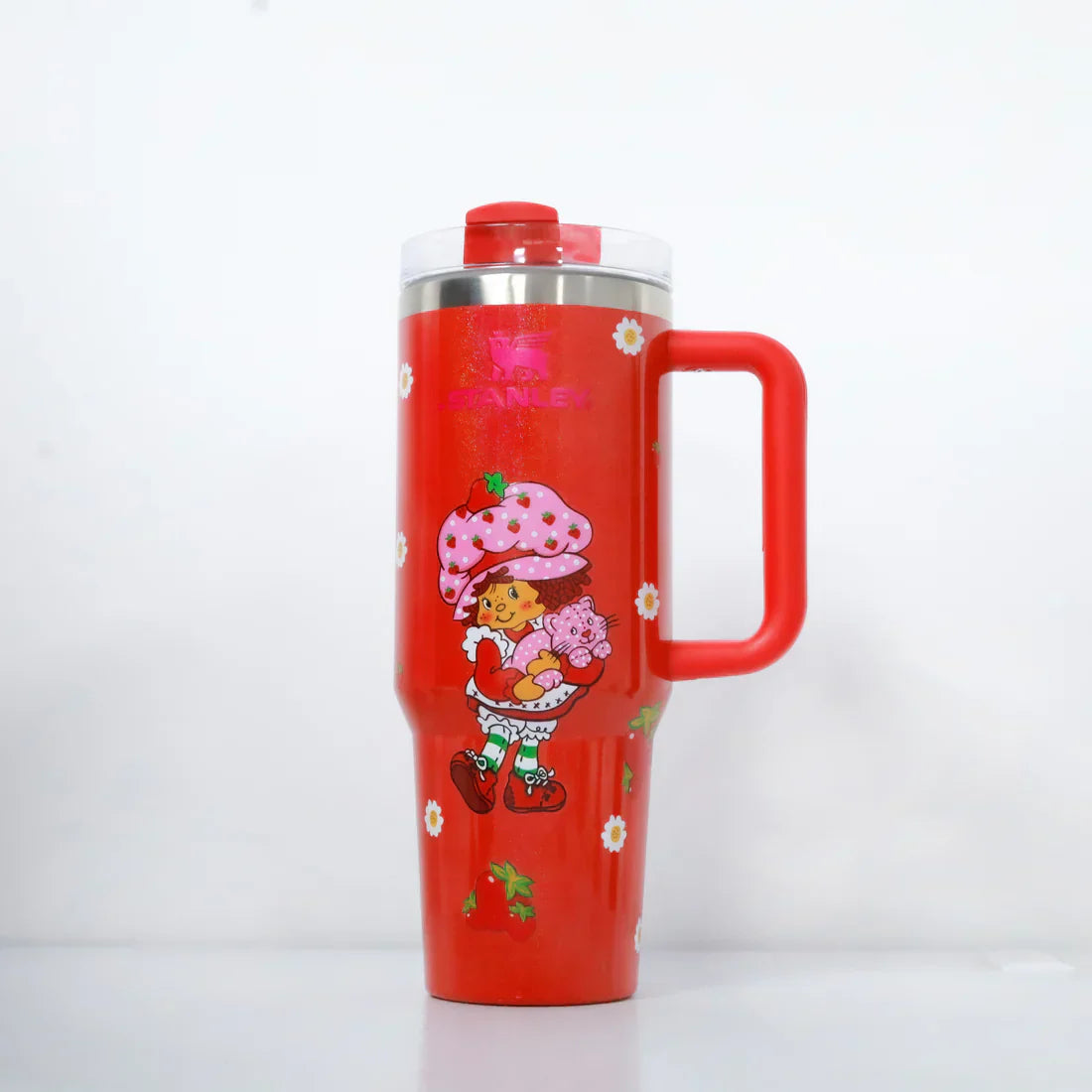 Exclusive Design: The Stanley x Strawberry Shortcake Limited Edition 40 Oz Tumbler features a unique, playful design that combines the timeless charm of Strawberry Shortcake with Stanley's durable, high-quality craftsmanship. The vibrant, collectible design appeals to both fans of the classic character and those looking for a fun, stylish tumbler.