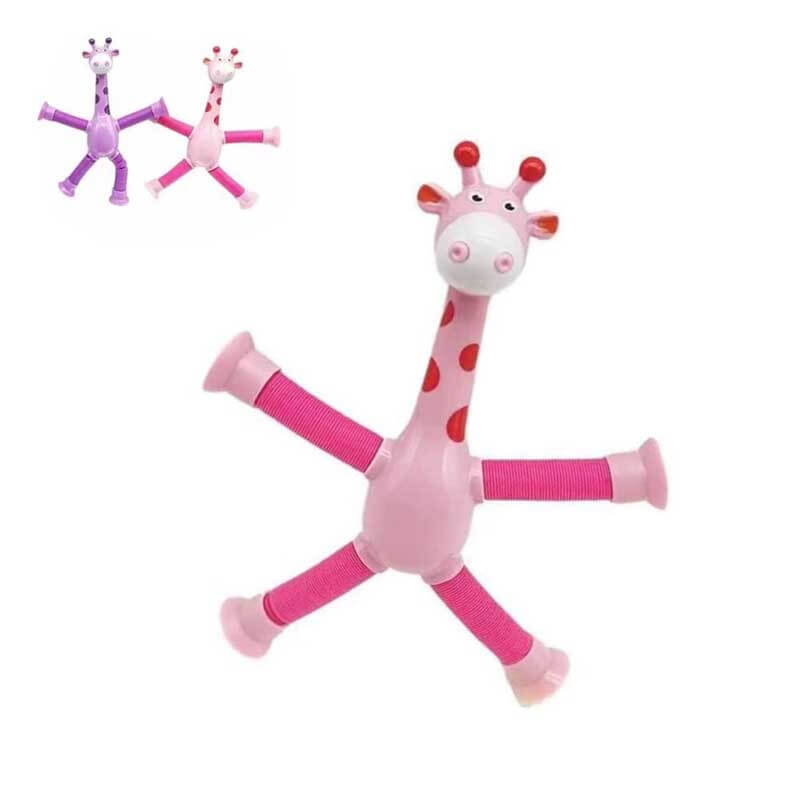 🦒【Creative Design】Telescopic Suction Cup Giraffe Toy is made of tubes, The cute animal body wraps both ends of the tube, which is not only beautiful, but also ensures the safety of children, which can pop, stretch and rotate.