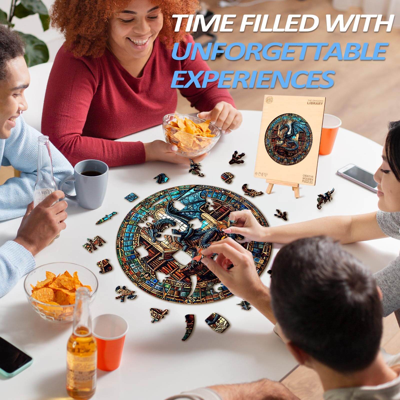 The Dragon's Library Wooden Jigsaw Puzzle | Unleash Imagination with Artisanal Craftsmanship