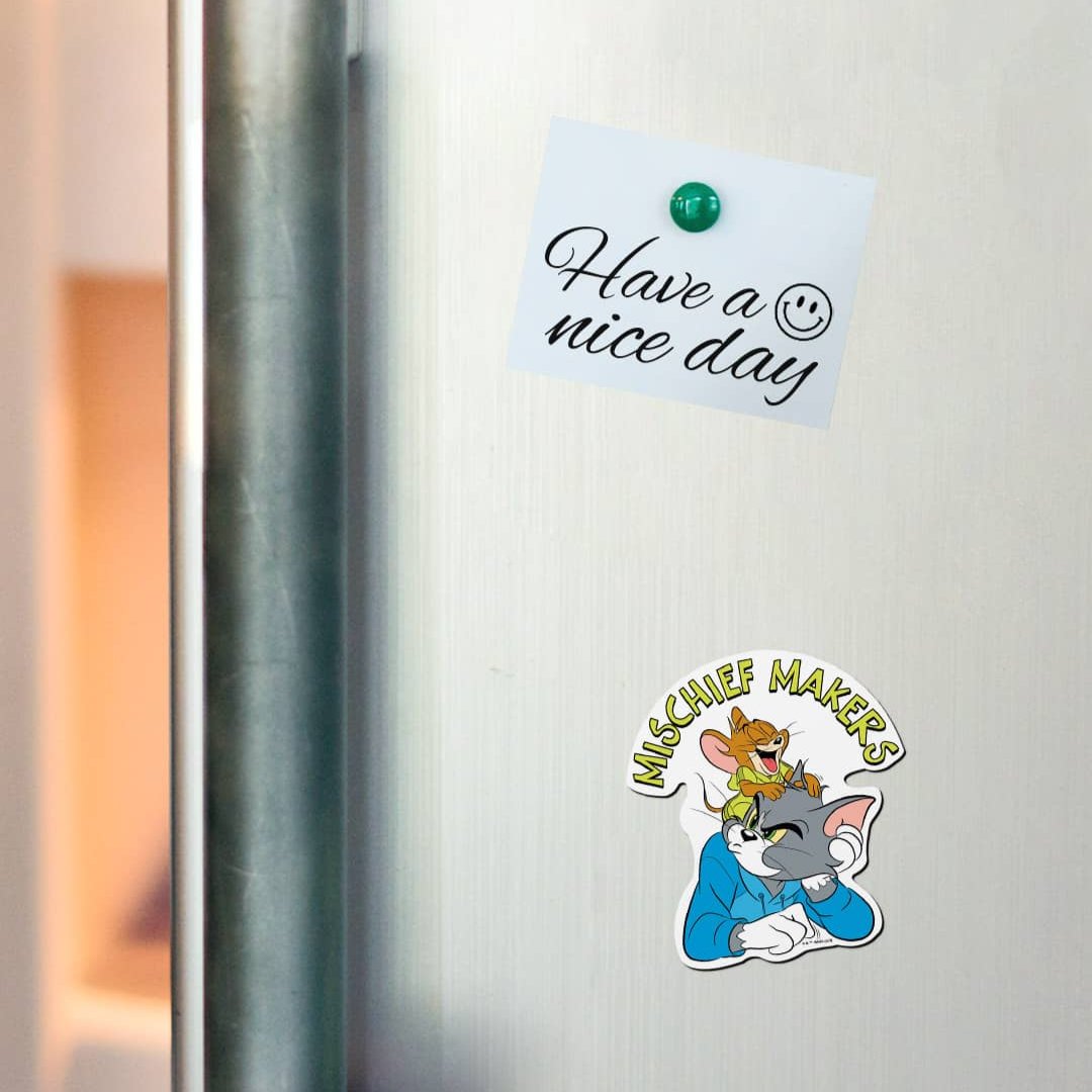 Enhance your fridge with a touch of fun and nostalgia with the Tom And Jerry - Mischeif Makers Fridge Magnet. This charming magnet features the beloved characters of Tom and Jerry, adding a playful touch to your kitchen decor. Made with high-quality materials, it is durable and long-lasting, making it a great addition to any collection or a delightful gift for any fan.