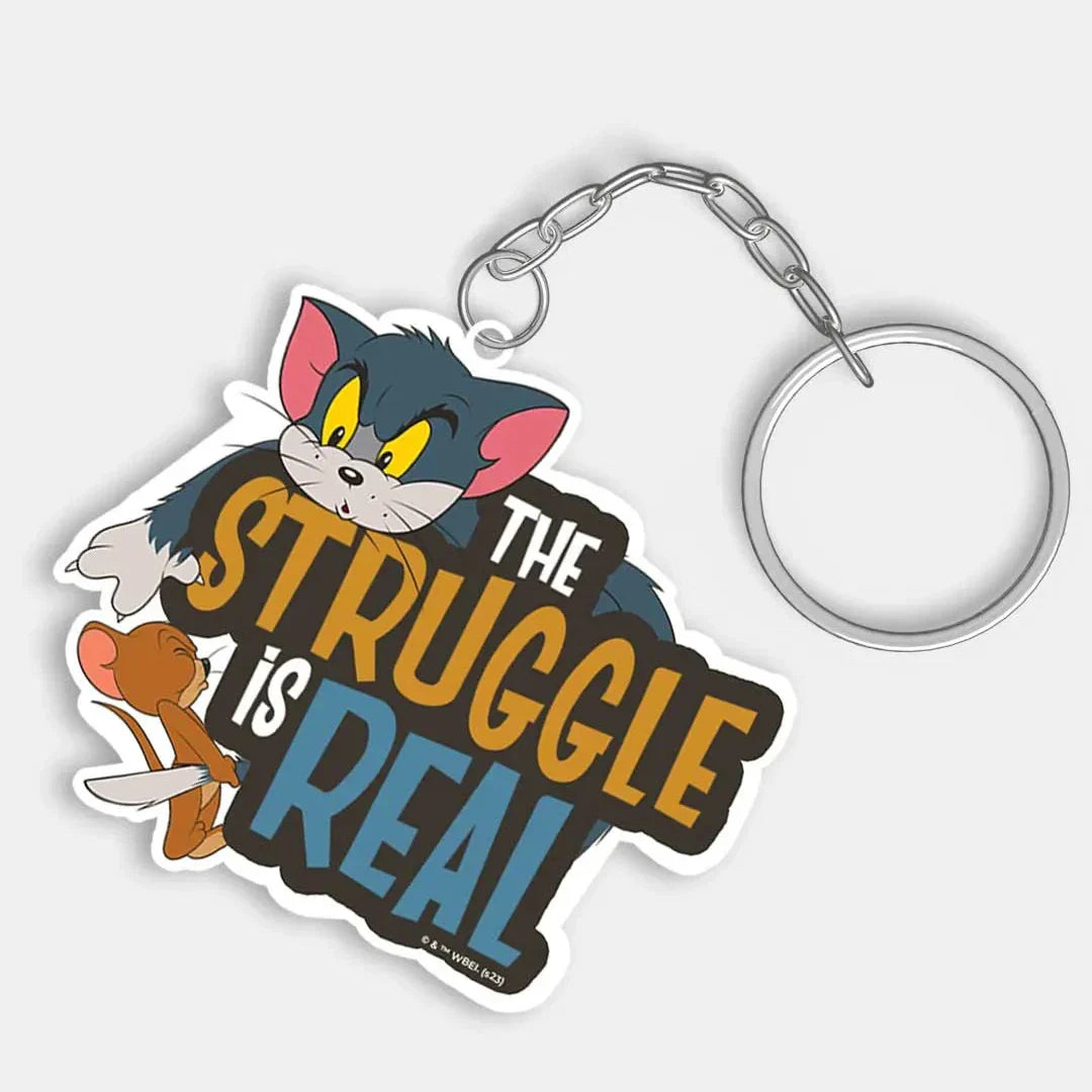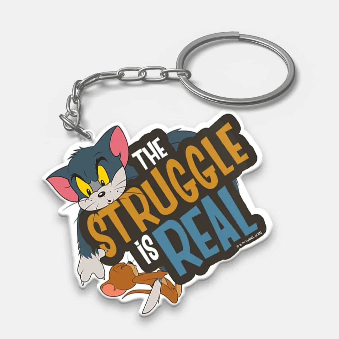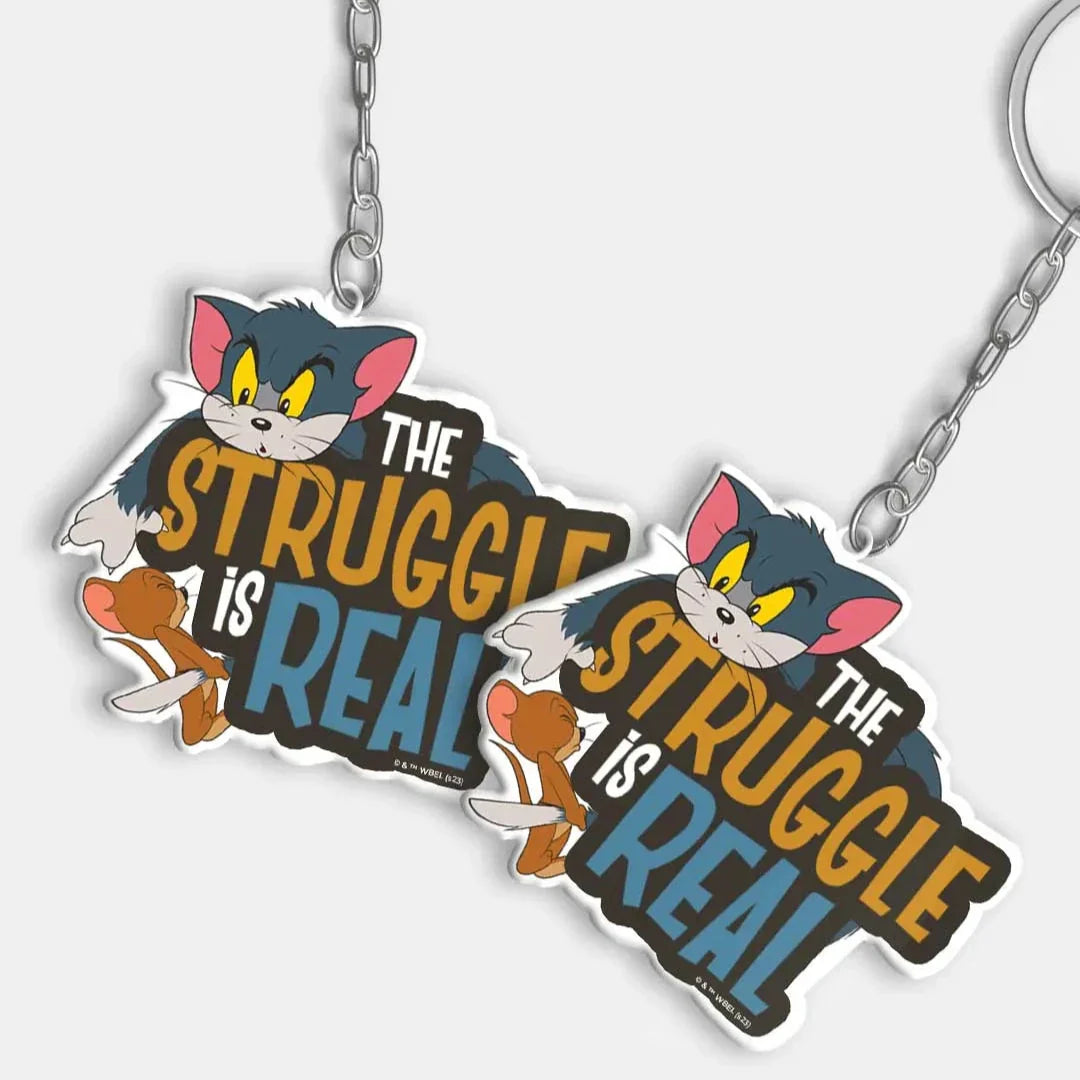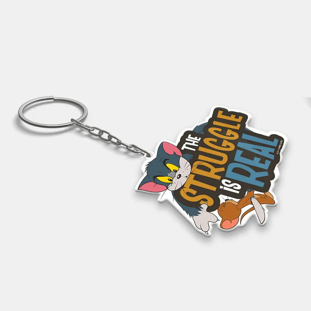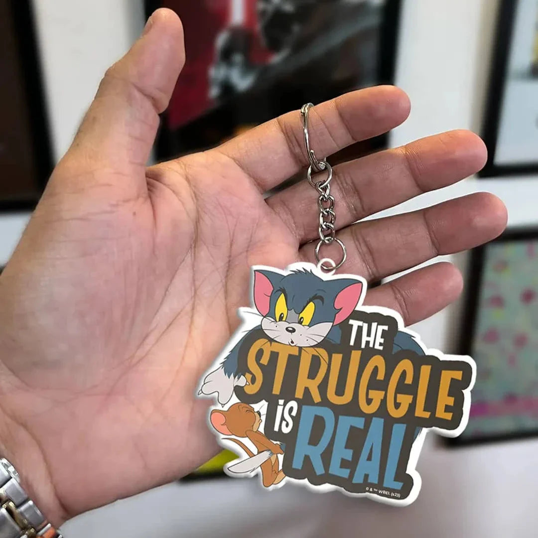 Introducing Tom And Jerry - The Struggle Is Real Acrylic Keychain, crafted by experts in the field. This product is a must-have for any fan, providing a durable and stylish way to show your love for the classic duo.