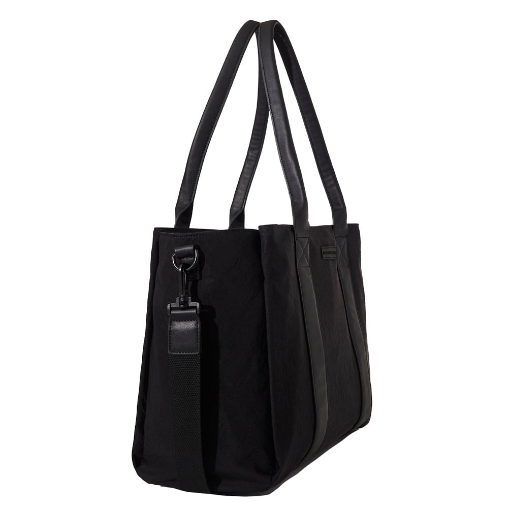 Made with recycled nylon, vegan leather accents, and a lining crafted from recycled plastic bottles.
