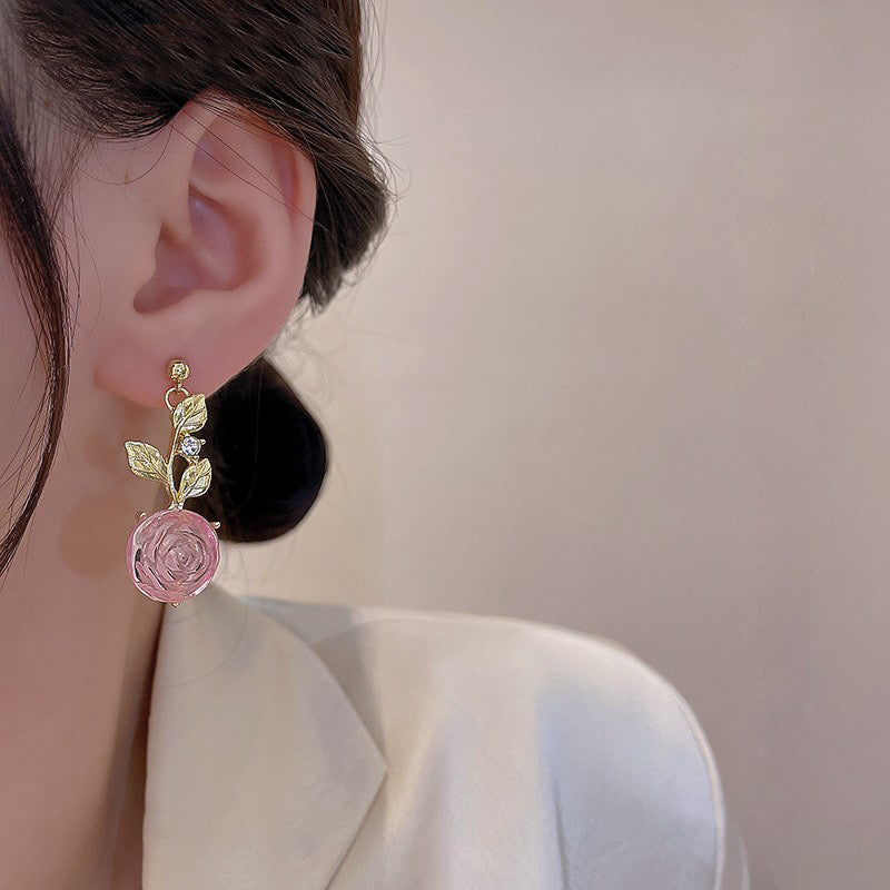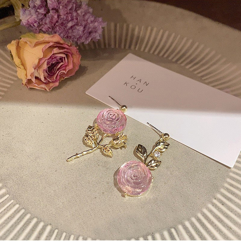 Pink earrings, rose earrings, Pinterest inspired accessories, Pinteresty jewellery, gold jewellery, gold earrings