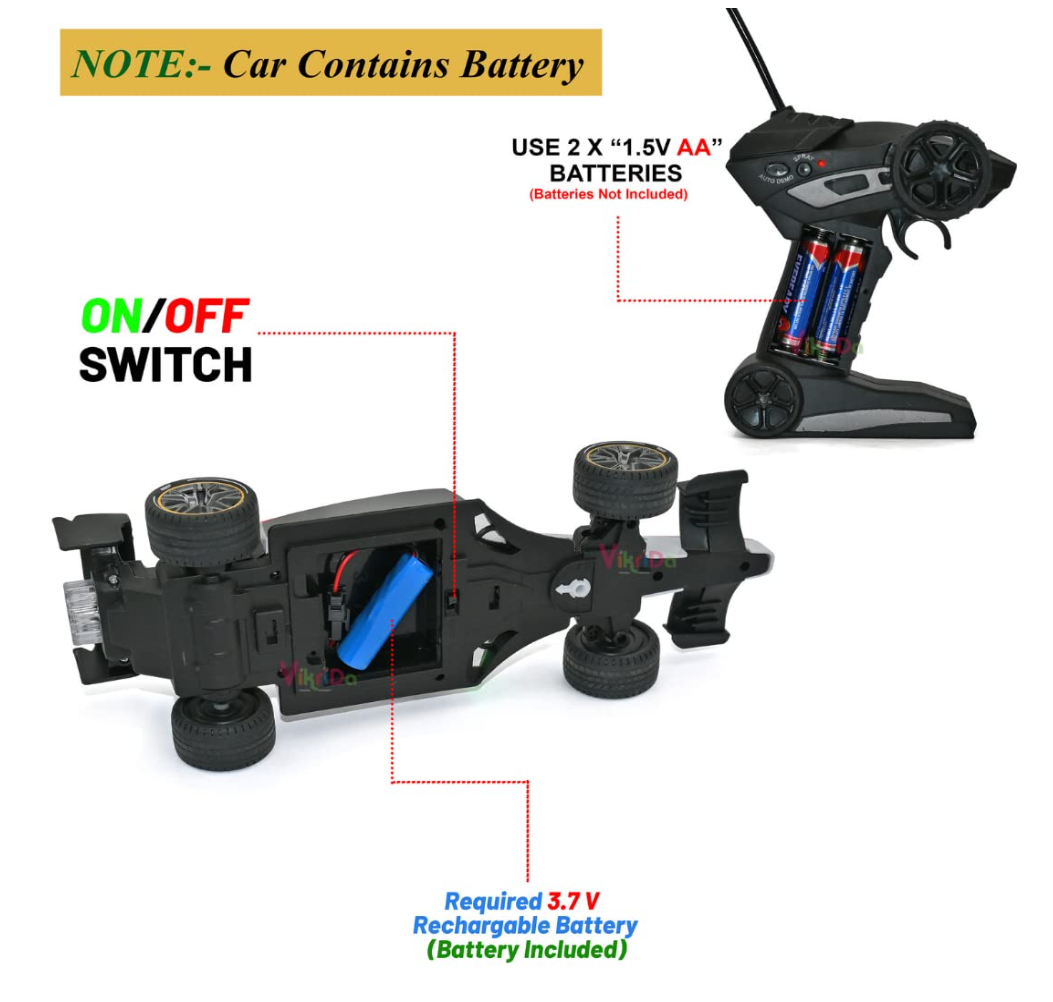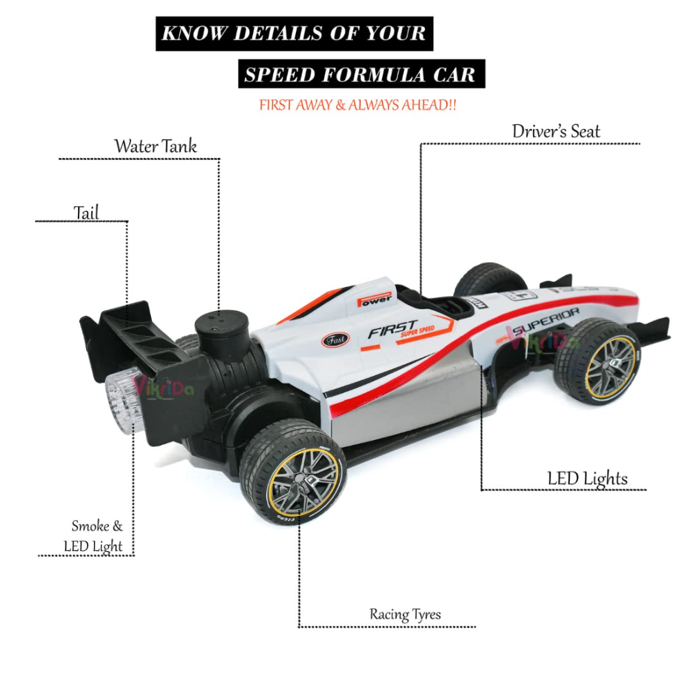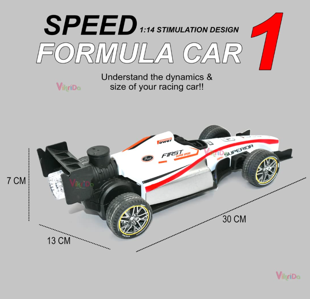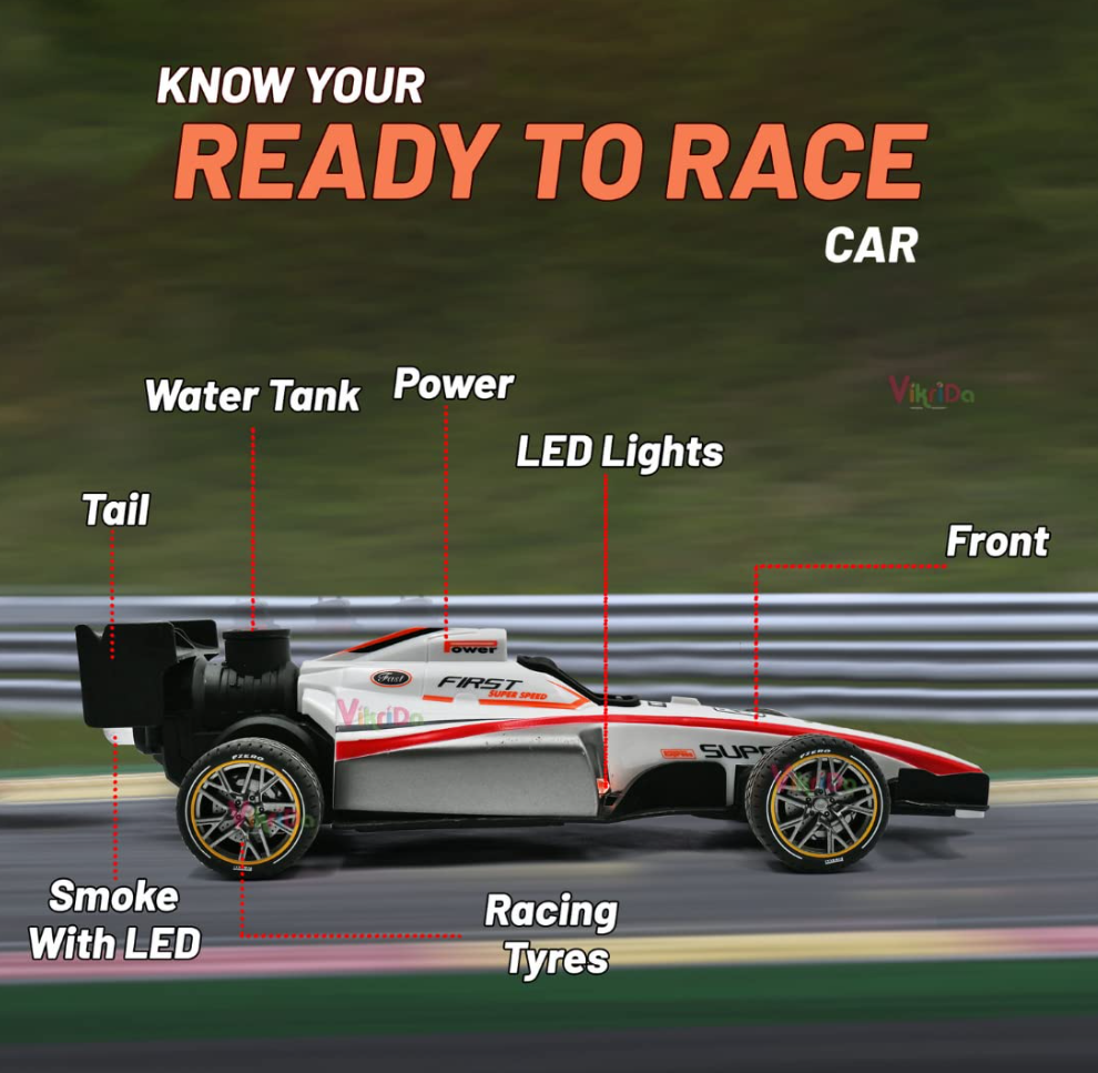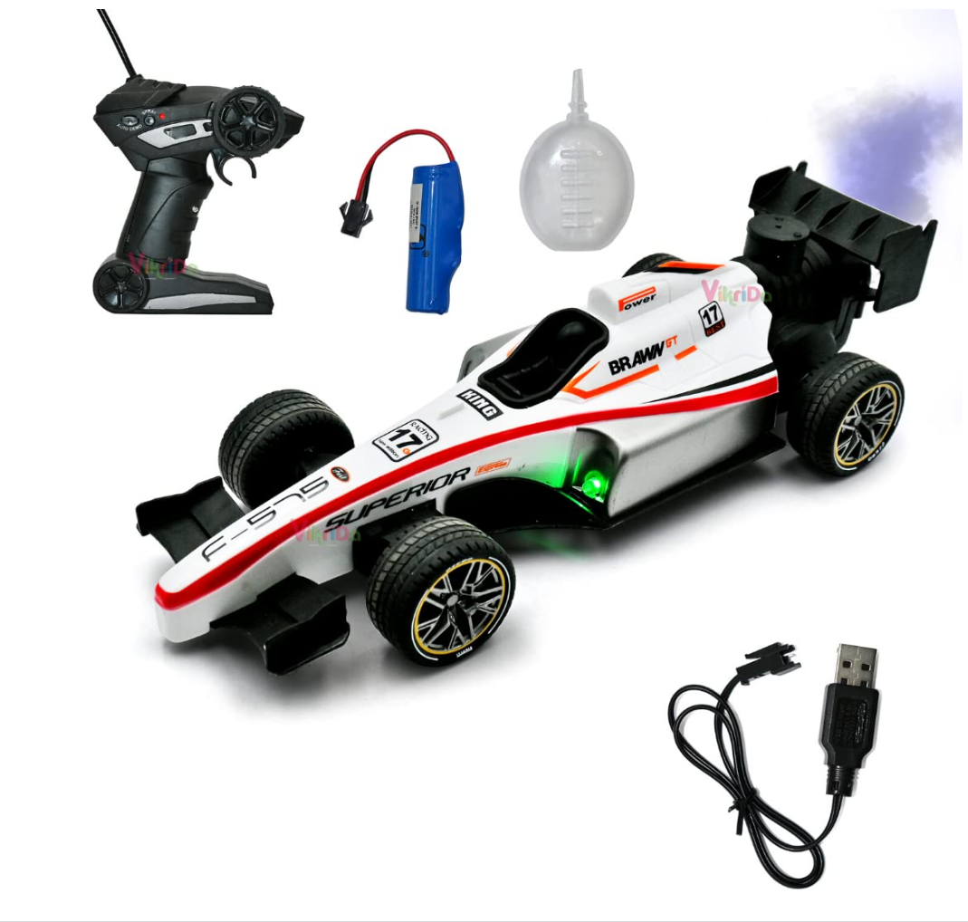 VikriDA R/C 1:14 Scale 4 Wheel Racing High Speed 15 Km/H Rock Formula 1 Car With Light&Flame Spray Function