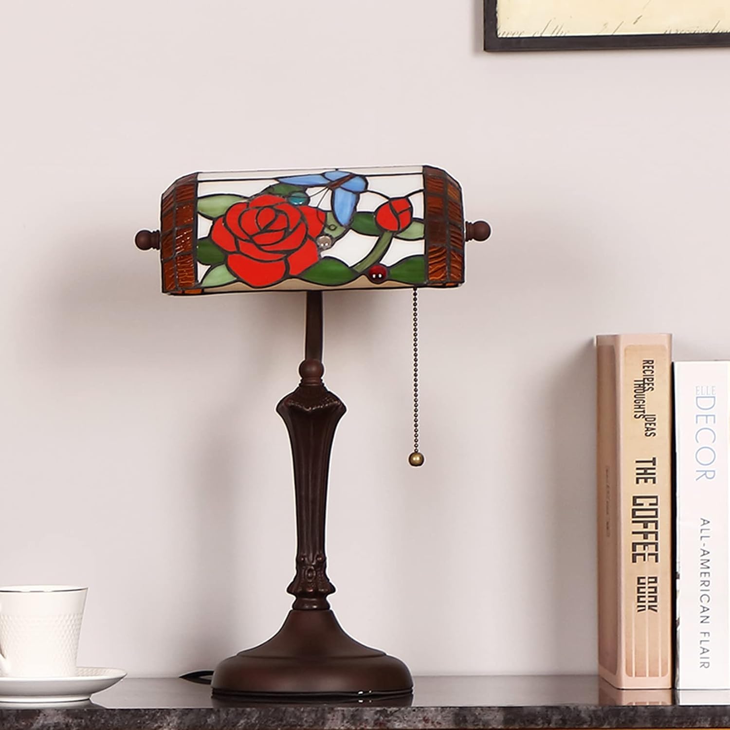Features: Handmade stained glass shades with romantic colors and a durable iron base that will not rust.