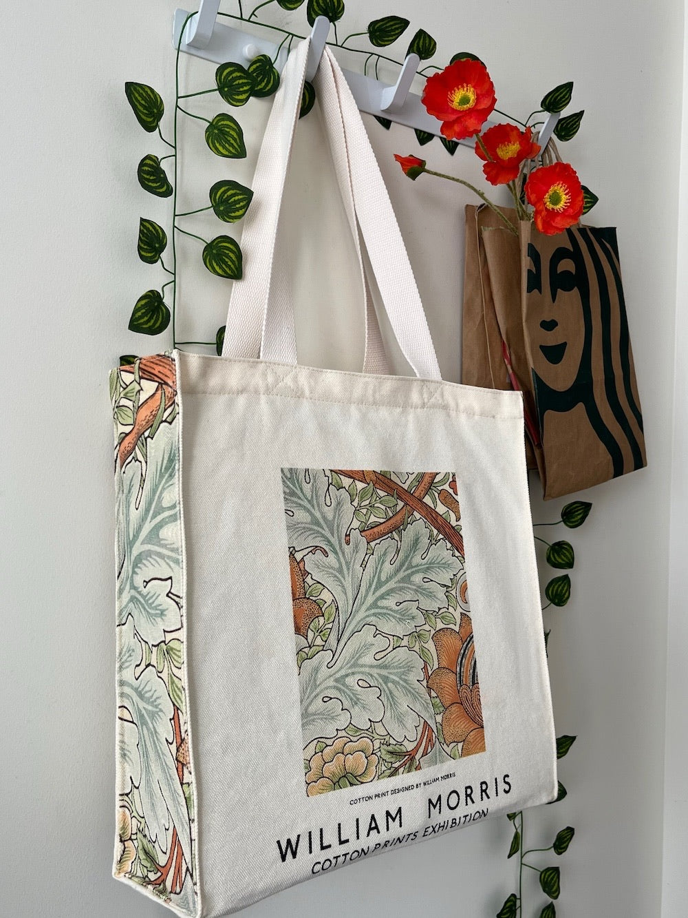 Designed for both style and function, this tote is perfect for shopping, commuting, or a casual day out. The swirling botanical pattern reflects the heart of the Arts and Crafts movement, adding a touch of heritage and artistry to your look.