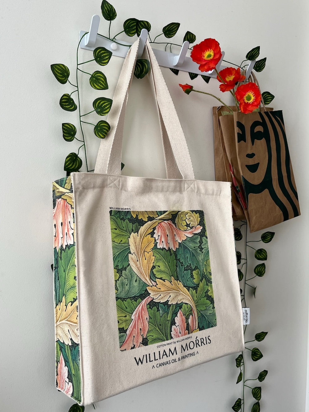Step out in timeless style with the William Morris "Green Acanthus" Tote Bag. Featuring Morris’s iconic 19th-century design, this tote showcases a rich tapestry of swirling green acanthus leaves — a hallmark of his nature-inspired craftsmanship.