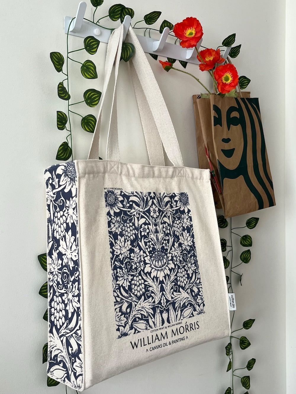 Add a touch of classic charm to your everyday routine with the William Morris "Sunflower" Tote Bag. Featuring Morris’s iconic 19th-century sunflower pattern, this tote captures the beauty of nature through intricate design and warm, earthy tones.