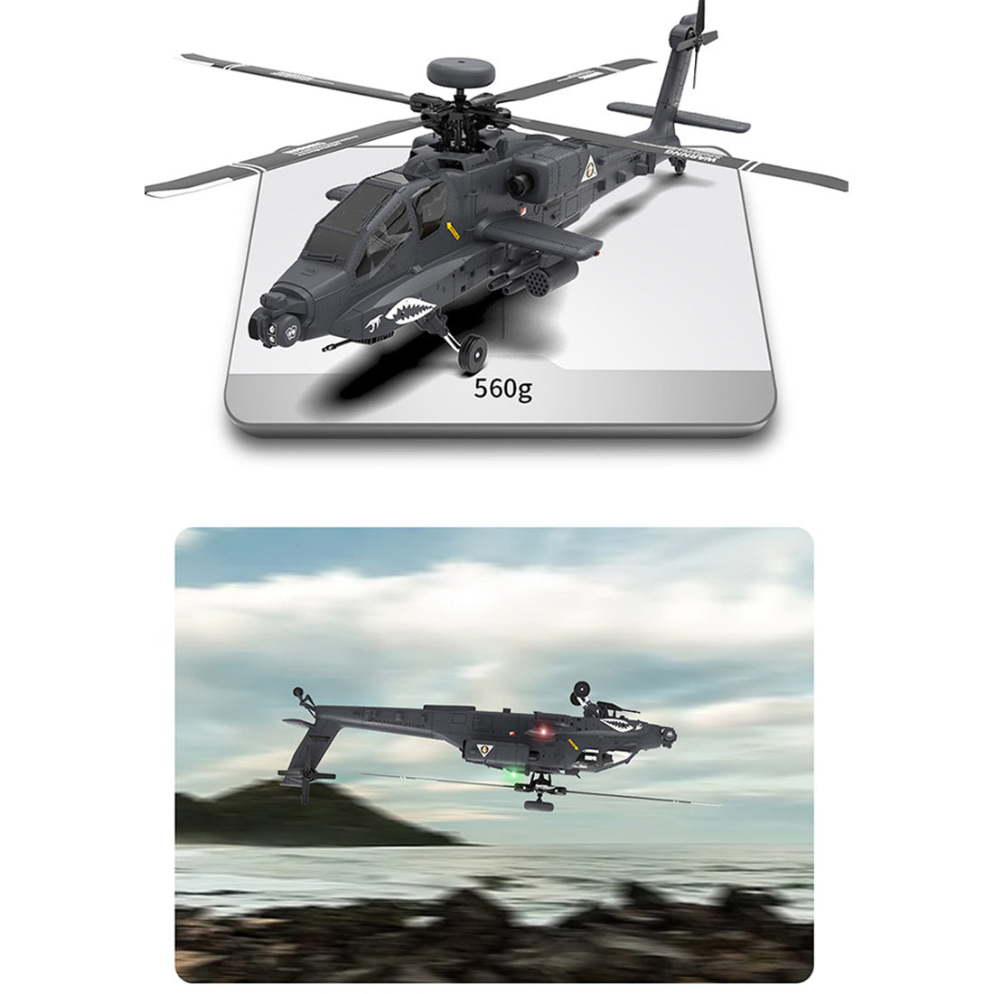 1. High-Simulation Helicopter Model: This model is a scaled-down version of a Apache helicopter, with a 32:1 ratio. It features highly detailed, realistic appearance, complete with cool lights and shock-absorbing landing gear, making it perfect for enthusiasts and collectors.